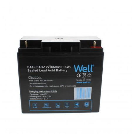 Aplicatie: sisteme de backup de alimentare, sisteme de alarma, UPS pentru siteme bancare, institutii medicale etc. Tip: T3 Tip: SLA Standard: Plumb acid Tensiune de iesire: 12 V Amperaj: 18 Ah Marca: Well Garantie: 6 luni