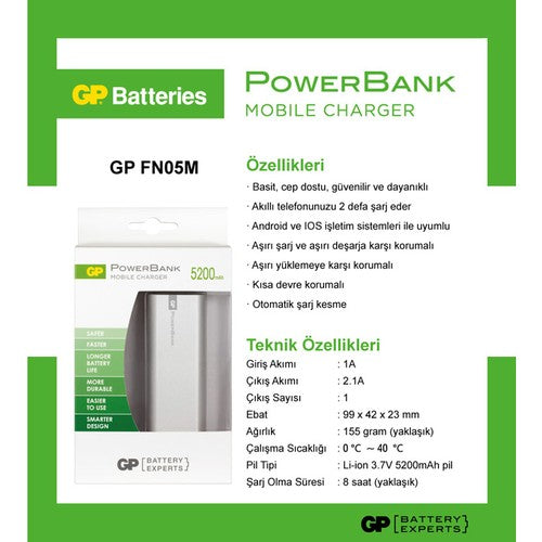 GP Portabil FN05M 5200 mAh Silver Powerbank (GPFN05MSE-2B1).