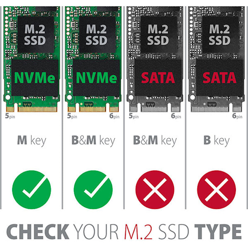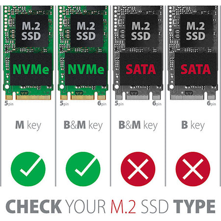 Adaptorul acceptă utilizarea unitatilor de stocare SSD NVMe (PCI-Express) M.2, pe ambele feee. Adaptorul nu are o limită a capacitatilor de disc SSD si se pot folosi carduri M.2 cu o dimensiune de pana la 22 x 80 mm.