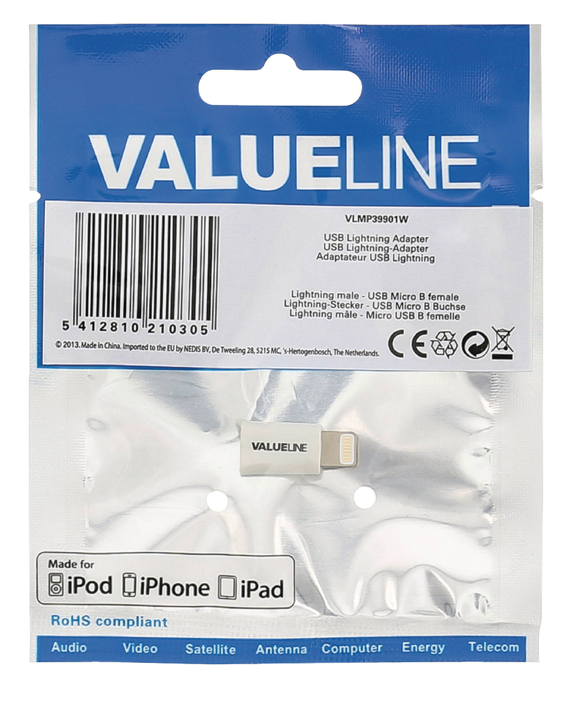 Placare Nichel. Compatibil: Apple Conector: Apple Conector: USB micro Marca: Valueline
