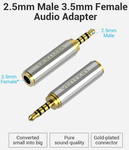 Adaptor Jack 2.5 mm 4 pin tata - Jack 3.5 mm 4 pini mama metal aurit VENTION VAB-S02.