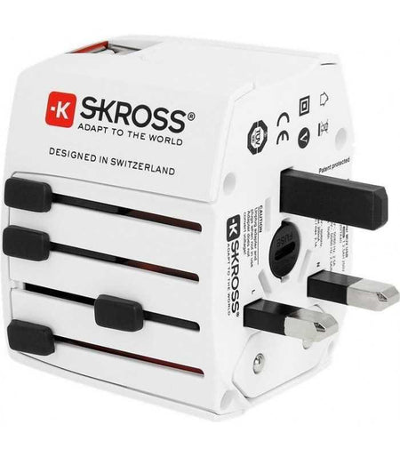 Adaptor priza Skross Universal cu 2 porturi USB.