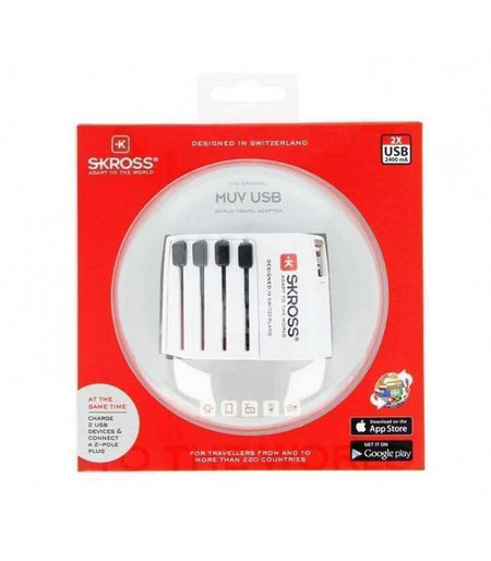 Cu adaptorul mondial MUV USB 2.4 călătorii din întreaga lume pot încărca două dispozitive USB și pot conecta simultan o priză cu 2 poli dezvăluită în mai mult de 220 de țări din întreaga lume.