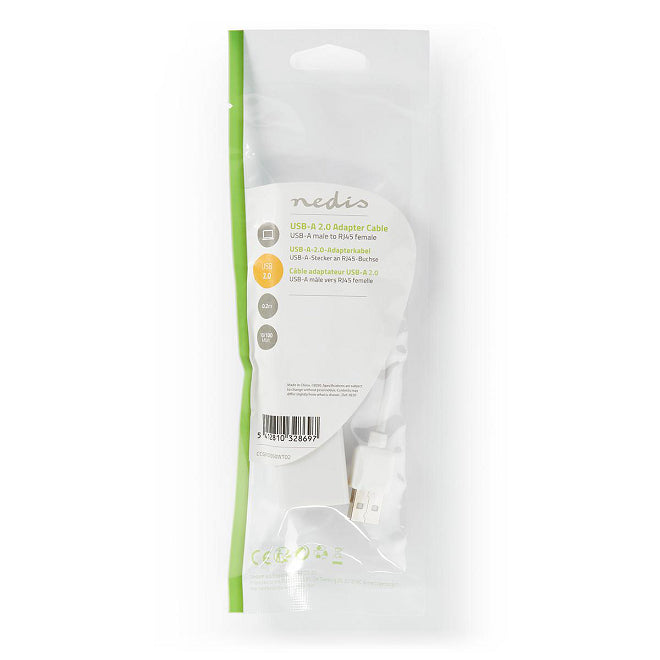 Rata maxima de transfer 100 Mbps. Tip conexiune: RJ45?USB Conector: RJ45 Conector: USB A A Conector: RJ45 mama B Conector: USB A tata Cablu: Rotund Standard: USB 2.0 Lungime: 20 cm Culoare: Alb Marca: nedis Garantie: 24 luni persoane fizice / 12 luni persoane juridice