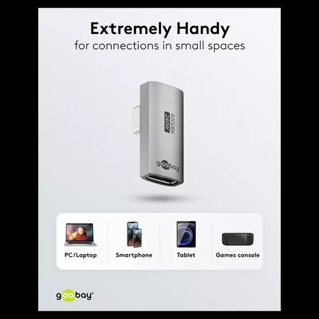 Deosebit de util pentru conexiuni în spații mici, de exemplu pentru conexiuni laterale pe laptopuri, tablete sau smartphone-uri, cum ar fi Apple iPhone 15 și Samsung Galaxy
