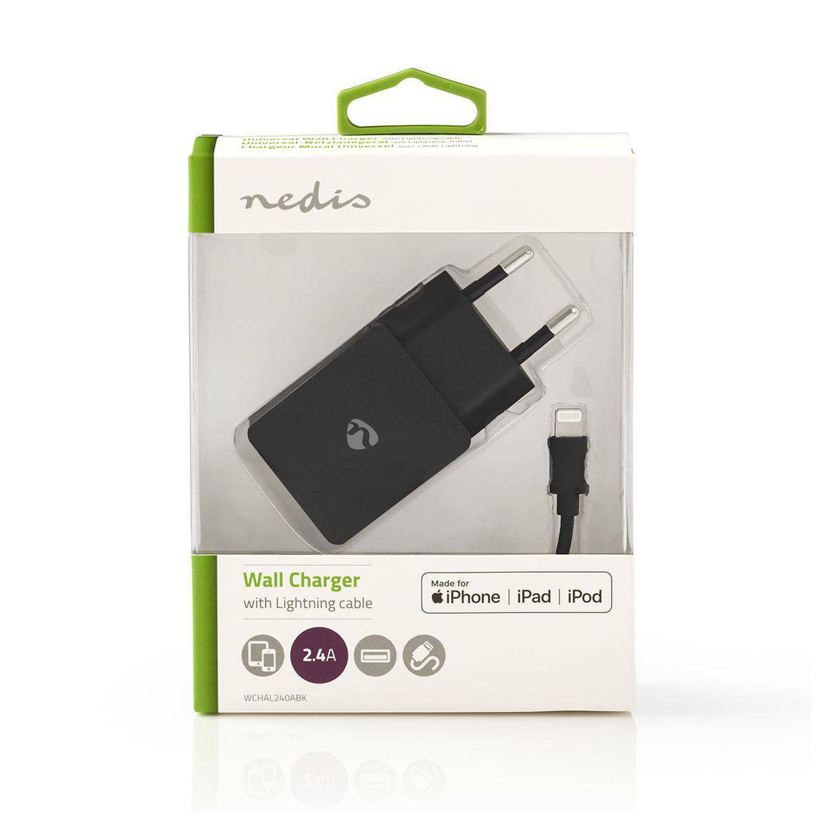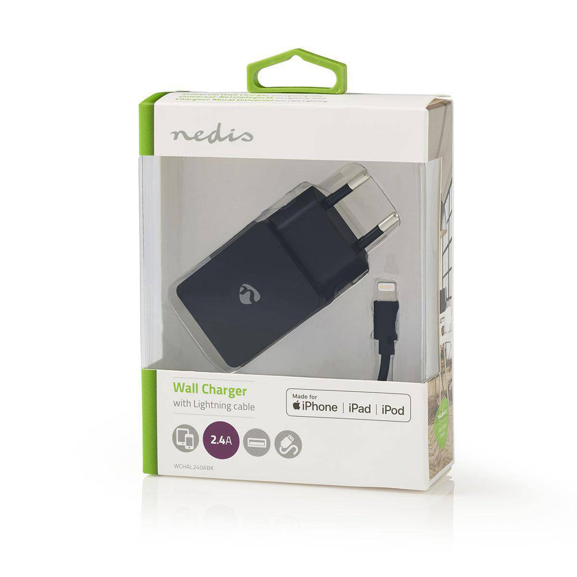 Alimentator USB 220V 1 iesire 2.4A negru cablu Lighting inclus NEDIS.