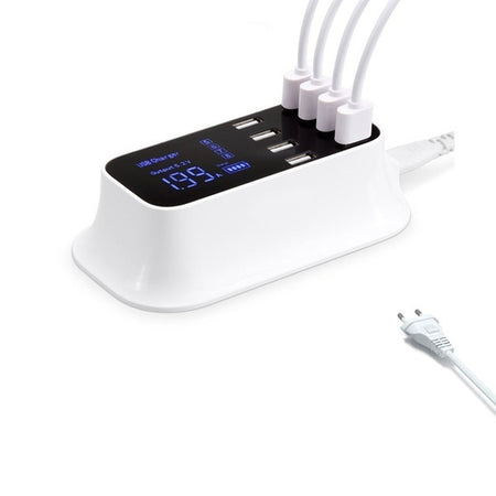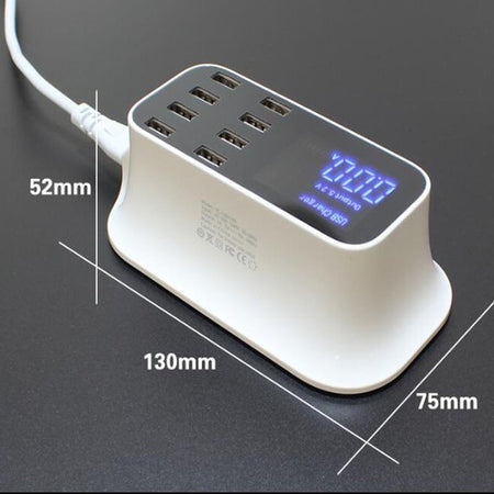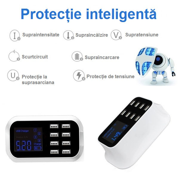 Alimentator incarcator 100-240VAC - 8x USB 8A 40W cu display alb
