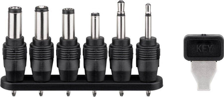 Contine 6 conectori detasabili: 3.5x1.35 mm, 5x2.1 mm, 5.5x1.5 mm, 5.5x2.5 mm, JACK 2.5 mm, JACK 3.5 mm,