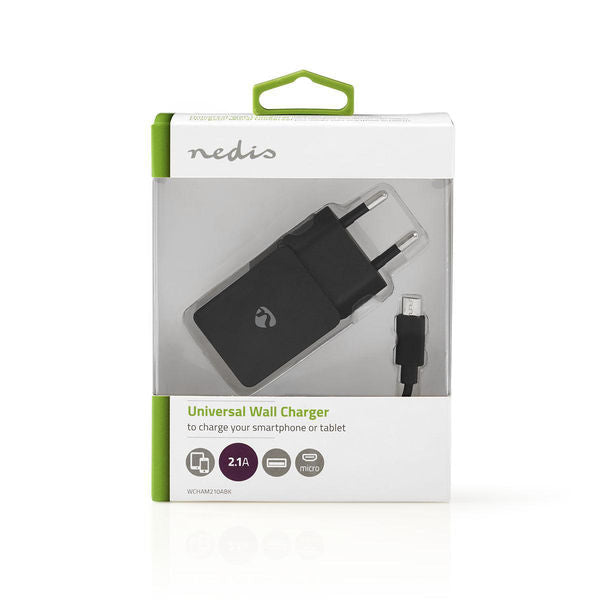 Alimentator USB Nedis 110 - 240V, 1 iesire 2.1A negru, micro USB inclus.