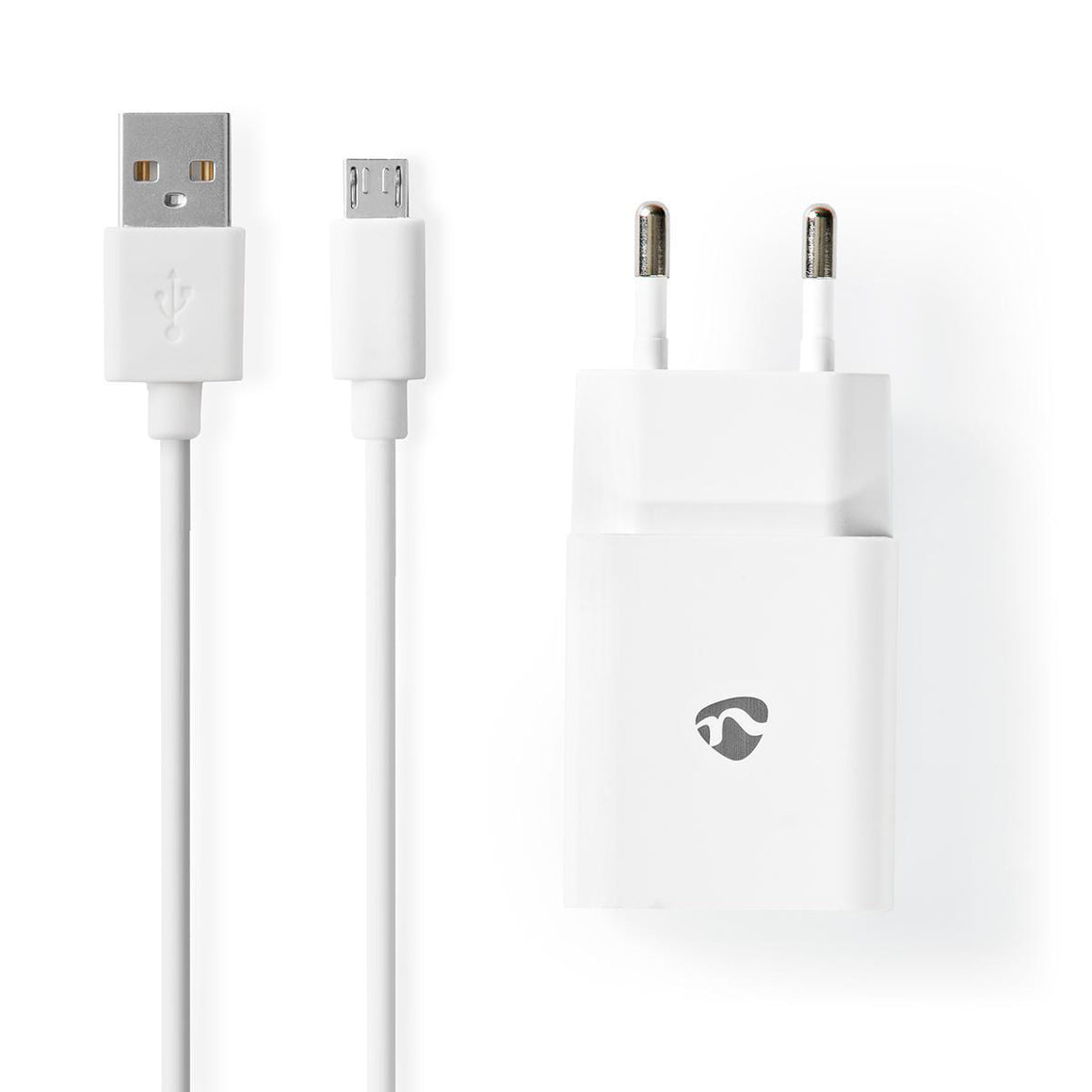 Alimentator USB Nedis, iesire 2.1A, cablu micro USB inclus, alb.