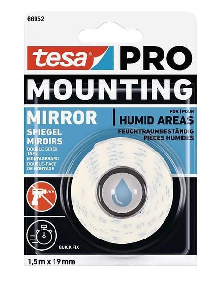 Banda tesa PRO Montaj Oglinzi este ideal? pentru meseria?i în cazul în care clien?ii nu doresc g?urirea suprafe?elor. Banda dublu adeziv? ofer? o fixare fiabil? chiar ?i în medii cu umiditate crescut?. Banda durabil? se lipe?te de suprafe?e netede, cum ar fi pl?ci ceramice ?i sus?ine obiecte plate cu o grosime de pân? la 4 mm, cum ar fi oglinzi. Cu aceast? band? dublu-adeziv? în trusa de scule sunte?i gata s? îndeplini?i toate nevoile de fixare la interior pe care le poate avea un client.