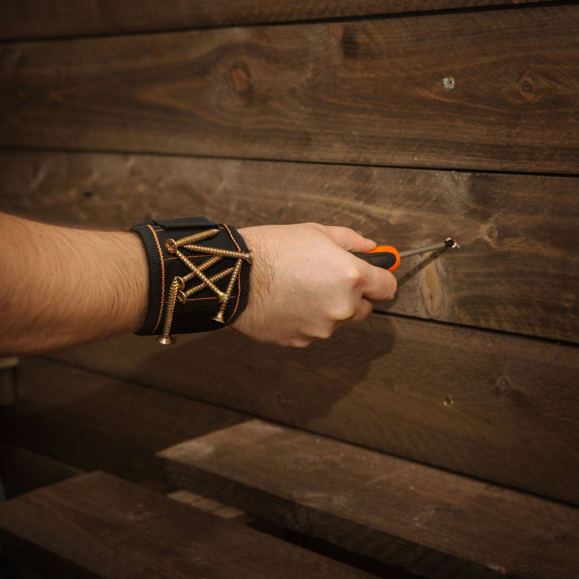 Bratara magnetica poliester 23x8cm HANDY 10873A. Bratara magnetica este de mare ajutor pt. depozitarea temporara a pieselor mici, ca suruburi, cuie, saibe, etc. ivite, sau necesare in cursul operatiilor de montaj - mai ales la lucrul la inaltime, unde nu exista posibilitatea de utilizare a cutiilor de depozitare Lungime reglabila (21-27 cm). Fixare prin scai (velcro). Culoare neagra. Port comod. Efect magnetic puternic. Dimensiuni: 23 x 8 cm Marca: HANDY Marca: HANDY