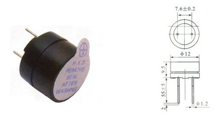 Buzzer 9V 12x9.5mm/7.6mm cablaj. Marca: OEM
