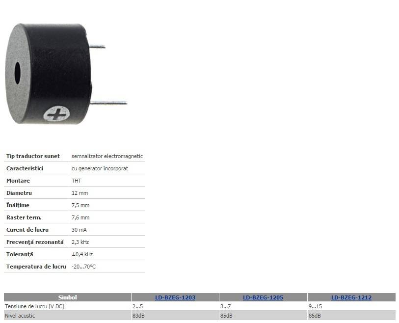 Tip traductor sunet semnalizator electromagnetic.