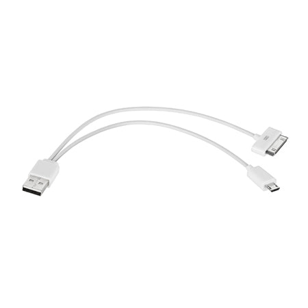 Daca vrei sa cumperi produse electronice, te asteptam cu intrebari. Accesoriu: Cablu adaptor Compatibil: Apple Tip conexiune: USB?micro USB+Apple Conector: Apple Conector: USB A Conector: USB micro A Conector: USB A tata B Conector: micro USB tata Standard: USB 2.0 Lungime: 5 cm Culoare: Alb Marca: OEM Garantie: 24 luni persoane fizice / 12 luni persoane juridice