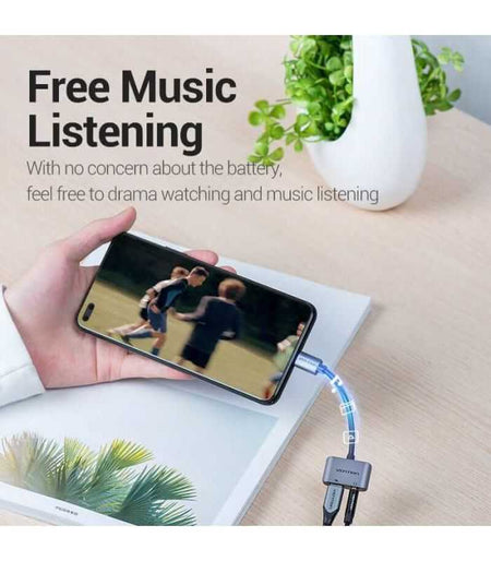 Ascultare și încărcare simultană: Cu acest adaptor versatil, vă puteți răsfăța cu muzica preferată în timp ce vă încărcați simultan dispozitivul.