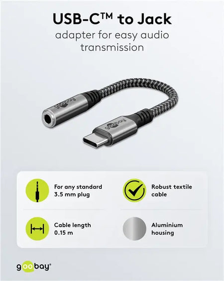 Acasa » Cablu adaptor USB-C la mufa Jack 3.5 mm mama 15cm textil Goobay 74056