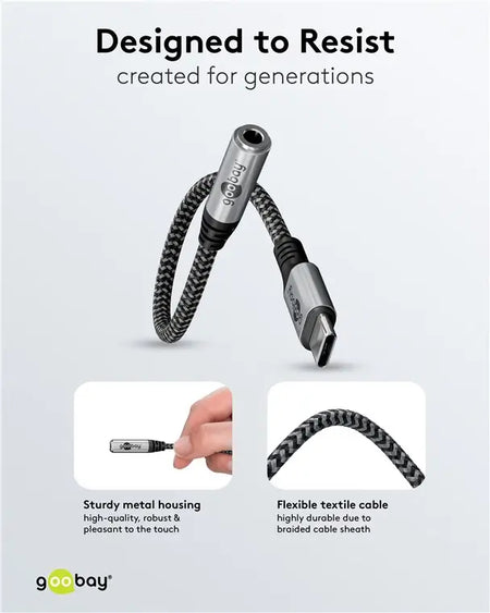 Jacheta textilă împletită și durabilă a adaptorului pentru căști are o senzație plăcută și este blândă cu suprafețele sensibile