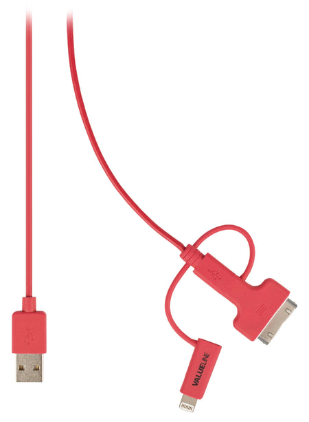 Cablu alimentare si sincronizare rosu USB 2.0 - micro USB +adaptor lightning +Apple Dock 30pini 1m cupru Valueline