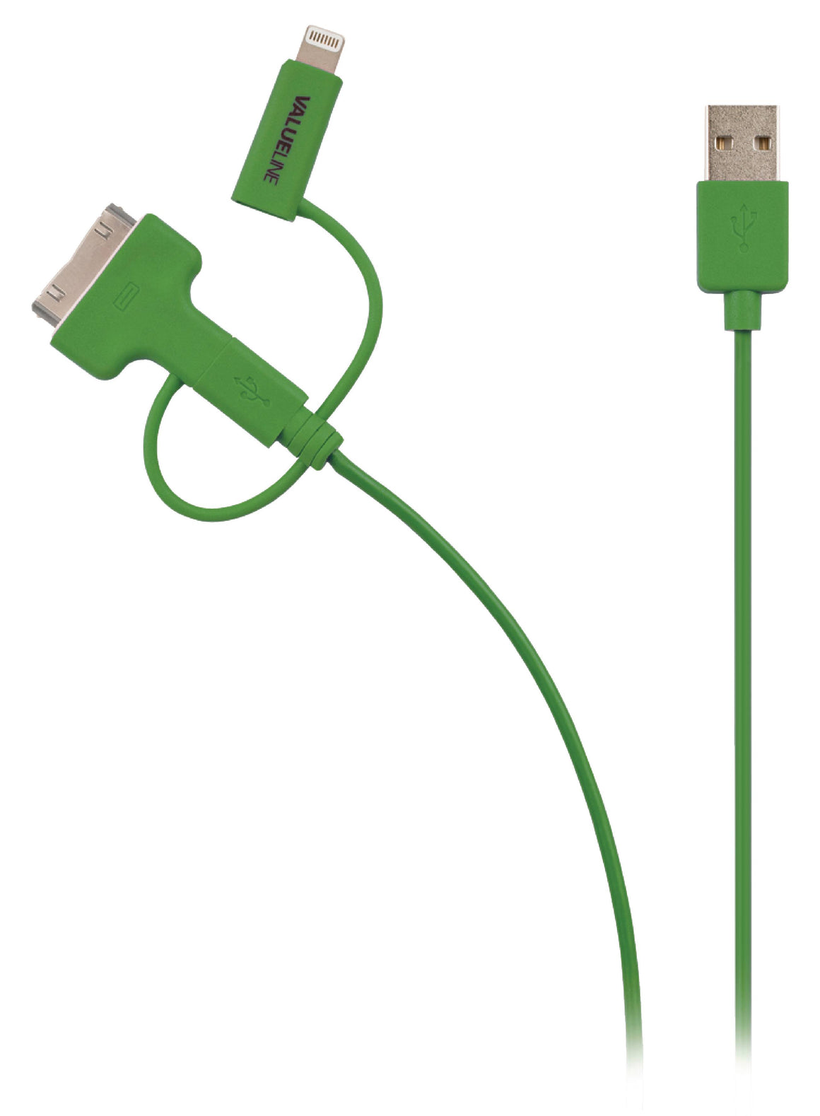 Cablu alimentare si sincronizare verde USB 2.0 - micro USB +adaptor lightning +Apple Dock 30pini 1m cupru Valueline