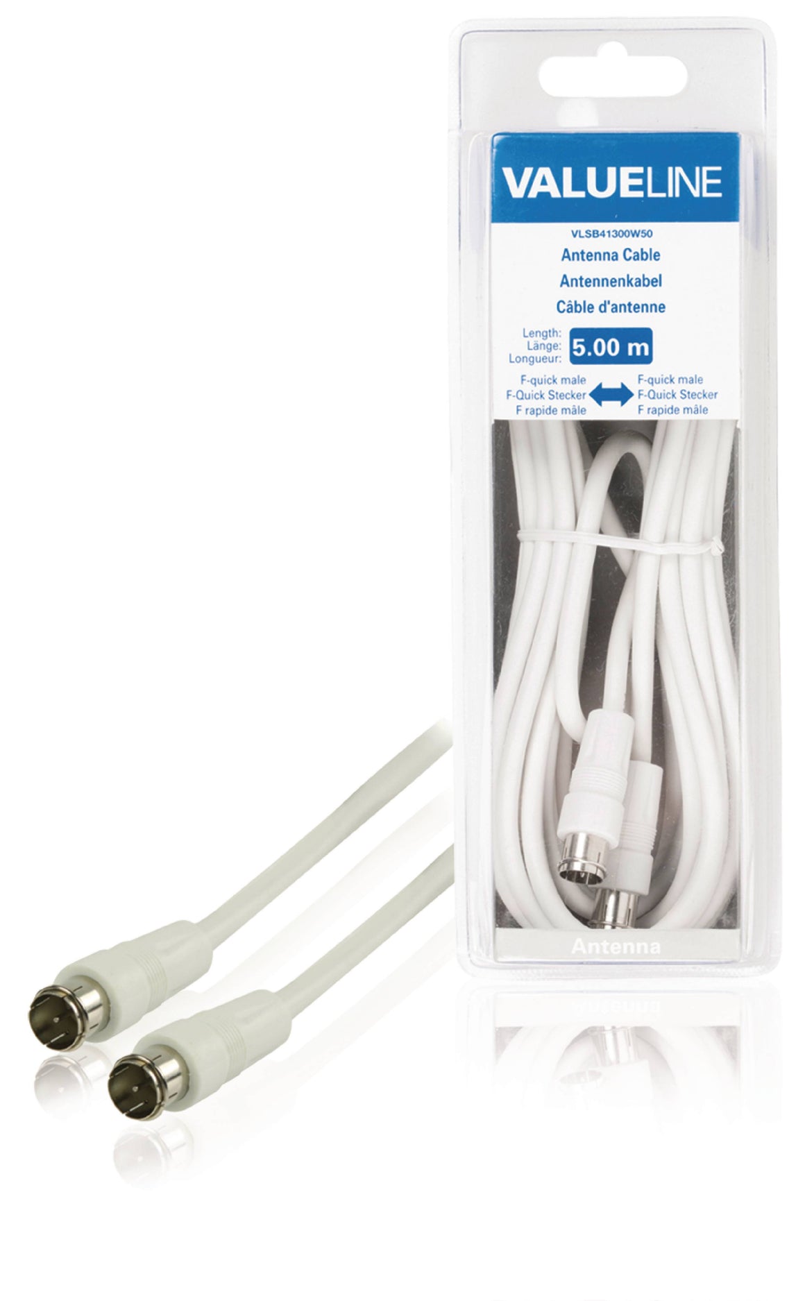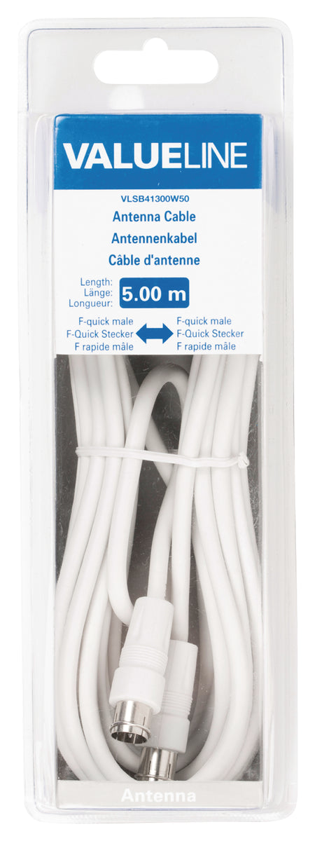 Cablu antena F tata rapida fara infiletare - F tata rapida fara filetare 5m alb VALUELINE.