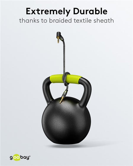 Cablu audio stereo 1m textil impletit Jack 3.5 mm - 3.5 mm 90 grade tata-tata aurit Goobay 65278.
