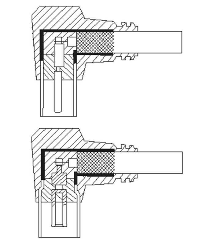 mufă coaxială 90° > mufă coaxială 90° (complet ecranată)
