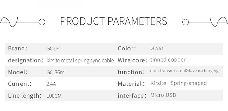 Cablu KIRSITE Micro USB Golf 36M argintiu 1m 2.4A Fast Charging.