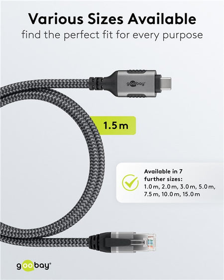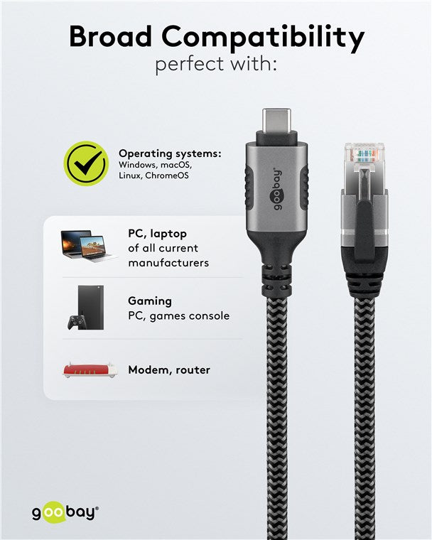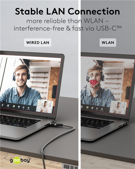 Upgrade tehnologic pentru a vă simplifica viața: cablul nostru adaptor inovator este soluția Ethernet compactă pentru toate dispozitivele USB-C™ fără propriul port RJ45. Cipul inteligent inteligent încorporat în mufa USB înlocuiește adaptorul RJ45-la-USB-C™ necesar anterior. Cu cablul, Ethernet este disponibil imediat, fără drivere suplimentare. Un bonus suplimentar: cablul USB 3.1 este compatibil cu portul Apple Thunderbolt™ 3.
