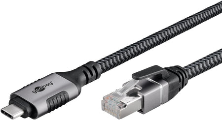 Cablu LAN Ethernet USB-C 3.1 la RJ45 1.5m Cat6 compatibil si pt. Apple Thunderbolt 3 negru Goobay 70697