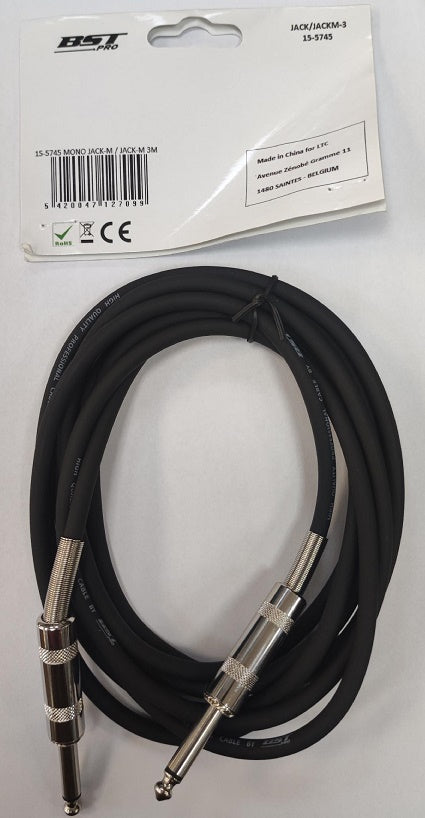 Cablu mono Jack 6.35 mm tata - Jack 6.35 mm tata 3m High Quality Professional by BST JACK/JACKM-3