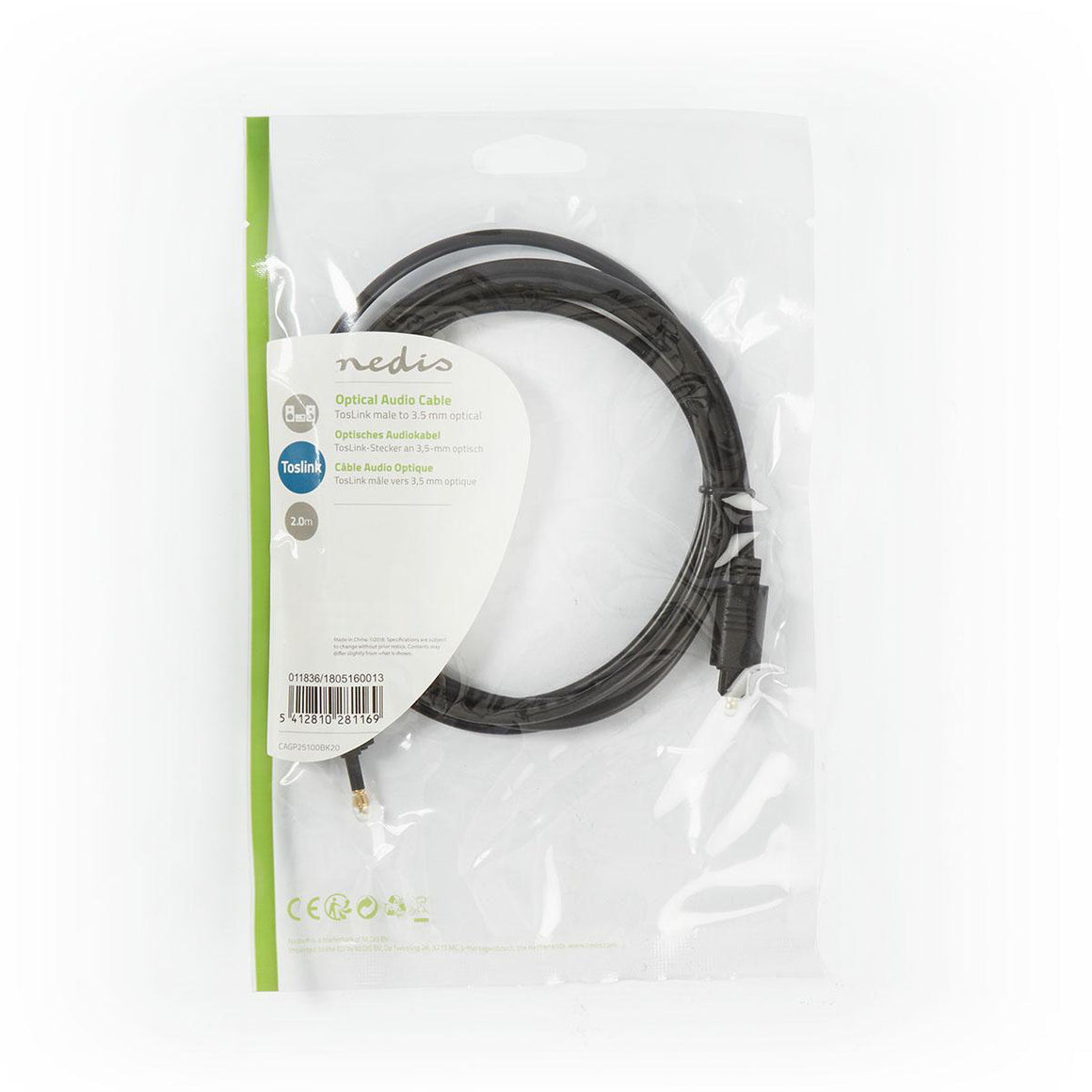 Cablu optic Nedis TosLink tata - mini optic 3.5mm tata, 2m, negru.