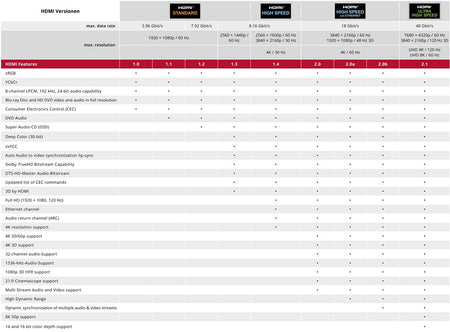 HDR (High Dynamic Range), HDMI Ethernet Channel (HEC), 4K 3D, 21: 9 Cinemascope, HDCP 2.2, Consumer Electronics Control (CEC)