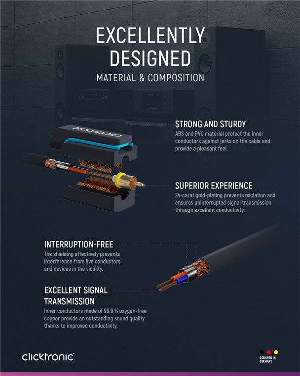 Cablu audio Clicktronic cu ecranare dubl? din folie de aluminiu ?i împletitur? de cupru pentru o calitate str?lucitoare a semnalului