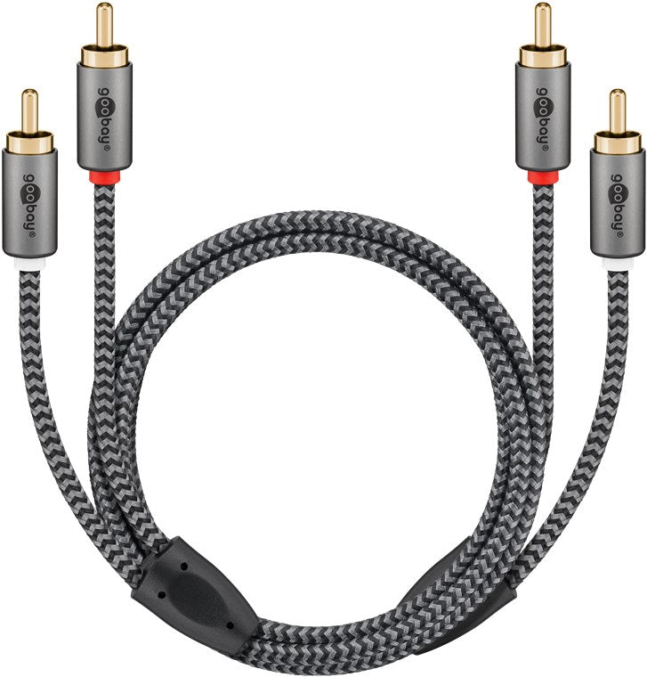 Cablu stereo 2x RCA tata-tata 2m premium extrem de flexibil textil negru Goobay Plus 65293.