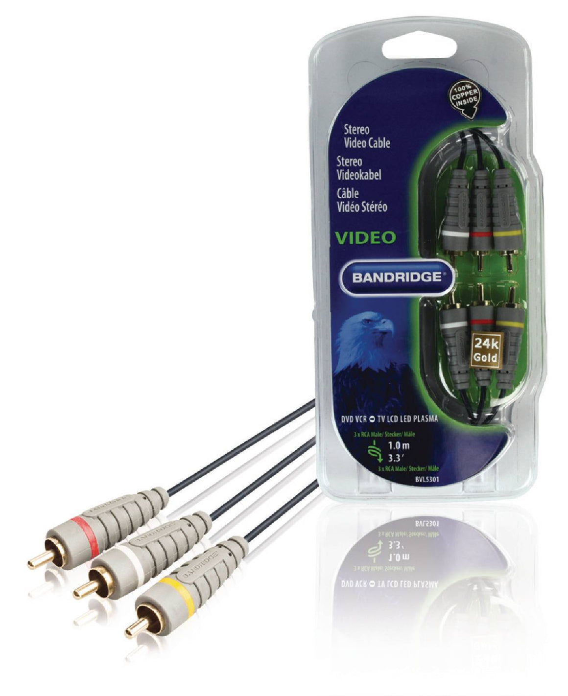 Placare Aurit. Conector: RCA Standard: STEREO Lungime: 1 m Culoare: Galben Culoare: Alb Culoare: Rosu Marca: BANDRIDGE Garantie: 24 luni persoane fizice / 12 luni persoane juridice