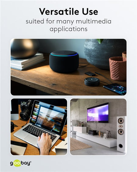 Seria Goobay Plus vine într-un design metalic subțire și elegant, în gri Sharkskin. Cablul RCA este soluția dvs. simplă pentru transmiterea sunetului clar de la smartphone-uri, laptopuri sau sisteme home cinema - pentru a vă bucura cu ușurință de film și muzică la o calitate superioară.