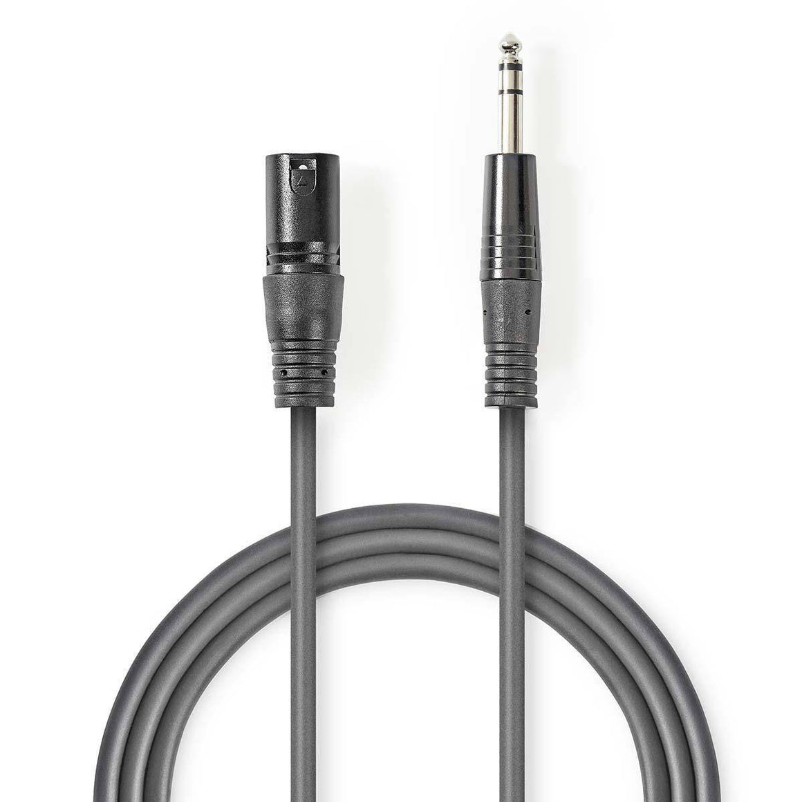 Cablu stereo XLR 3 pini tata - JACK 6.5mm tata 5m gri Nedis.