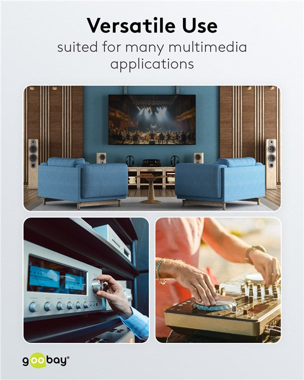 Seria Goobay Plus vine într-un design metalic subțire și elegant, în gri Sharkskin. Cablul RCA este special adaptat semnalelor analogice de joasă frecvență ale subwooferelor - pentru un răspuns bogat și puternic al basului și o experiență impresionantă de muzică și film.
