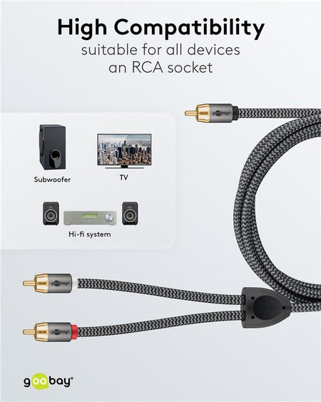 Seria Goobay Plus vine într-un design metalic subțire și elegant, în gri Sharkskin. Cablul RCA este special adaptat semnalelor analogice de joasă frecvență ale subwooferelor - pentru un răspuns bogat și puternic al basului și o experiență impresionantă de muzică și film.