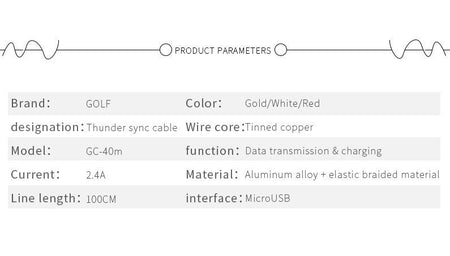 Cablu THUNDER Micro USB Golf 40M argintiu 1m 2400mA Fast Charging.