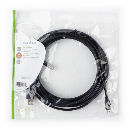 Cablu USB 2.0 A tata - Mini USB 5-pini tata 5m negru NEDIS.