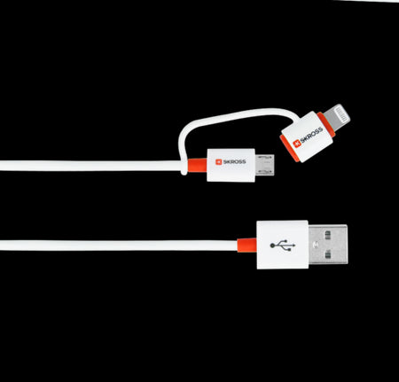 Cablu Skross, USB 2 in 1 cu conector micro USB - lightning, Essentials Line, 1 m, alb.