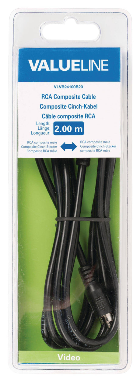 Cablu video compozit RCA tata la compozit RCA tata 2m negru ValuelineCablu video compozit RCA tata <-> compozit RCA tata, 2.0 m, negruGeneral informationThis composite AV cable with composite RCA connector is suitable for connecting devices such as your DVD player to your TV.SpecificationsConnector design - side B: StraightDiameter: 5.0 mmPlating: NickelLength: 2.00 mCable design: RoundConnector design - side A: StraightOutside material: PVCPackaging: BlisterConductor material: CCSColour: BlackConnection B: RCA MaleCable type: CompositeConnection A: RCA MalePackage contents? 1x RCA composite cable Accesoriu: Cablu Tip conexiune: RCA?RCA Conector: RCA A Conector: RCA tata B Conector: RCA tata Lungime: 2 m Culoare: Negru Marca: Valueline Garantie: 24 luni persoane fizice / 12 luni persoane juridice