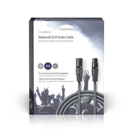 Cablu XLR 3 Pini tata - XLR 3 Pini mama 20m gri Nedis.