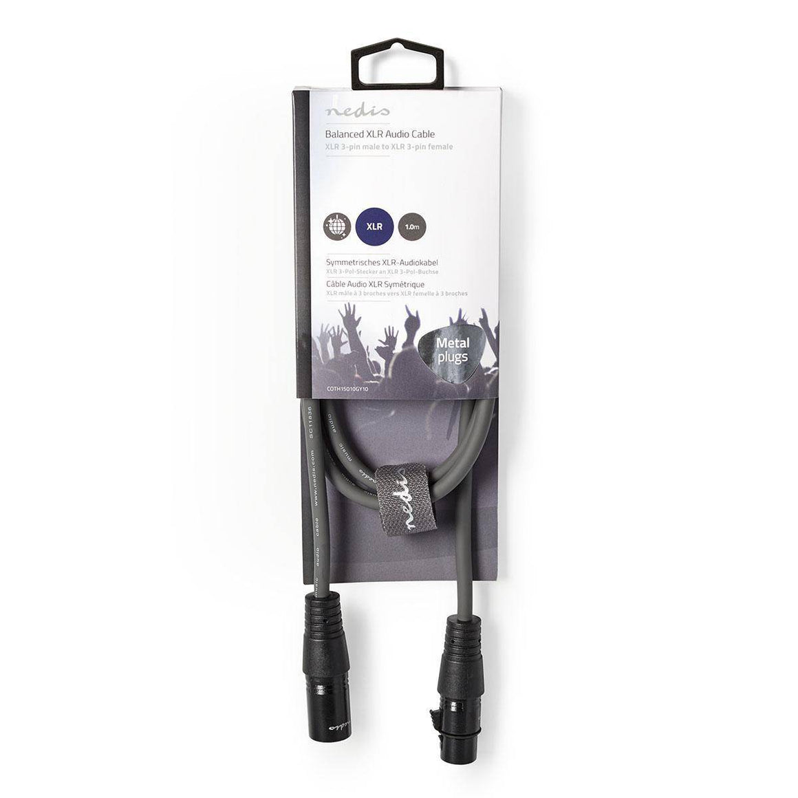 Cablu XLR Stereo XLR 3 pini tata - XLR 3 pini mama 1m gri Nedis