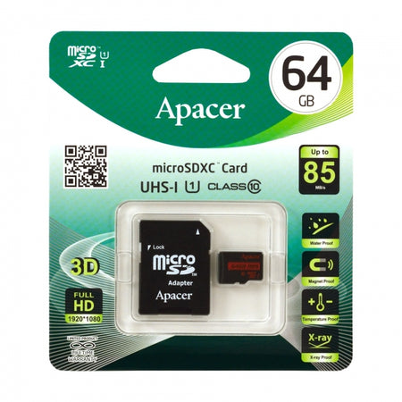 Card microSDXC UHS-I Apacer 64GB clasa10 cu adaptor SD