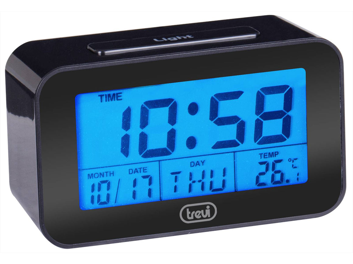 Ceas desteptator cu LCD SLD 3P50 termometru calendar negru Trevi.
