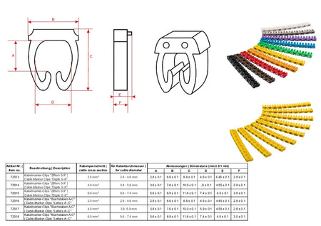 Inele de codare colorate 10x 10 pentru etichetarea cablurilor cu o secțiune transversală a firului de 6 mm².