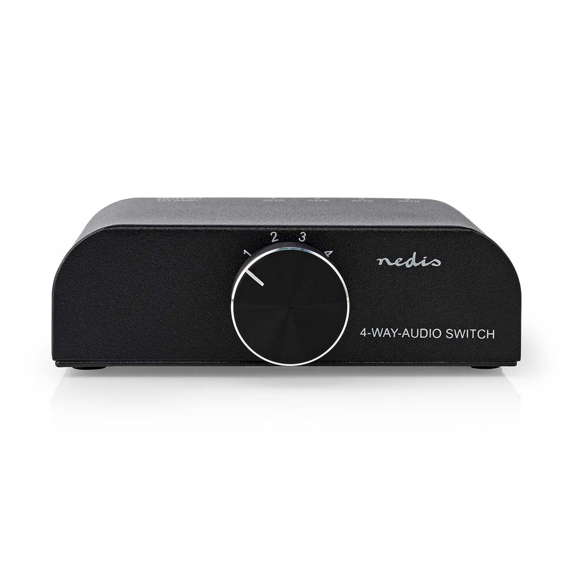 Acest comutator audio stereo analogic Nedis poate fi utilizat pentru a conecta trei dispozitive cu conexiuni audio stereo RCA și un dispozitiv suplimentar printr-un conector Jack de 3,5 mm la un amplificator/receptor cu conexiune audio stereo RCA.
